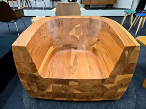 本当に木でできているのか疑ってしまうほど複雑な形状をしていますが、何より驚いたのはその座り心地。