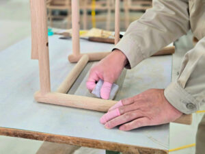 天童木工の椅子づくりでは、多くの工程が機械ではなく職人の手作業で支えられています。
