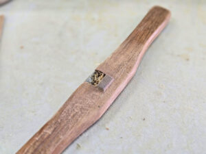 まずはスライスされた薄い板を7枚糊付けし、丁寧にかつ手早く貼り付けます。