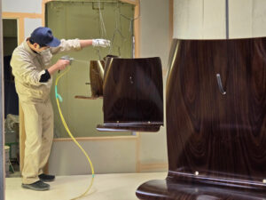 丁寧に磨き上げた後は、幾重にも塗装を施していきます。