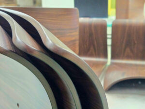 この曲線を生み出しているのが、天童木工の代名詞ともいえる「成形合板」技術です。
