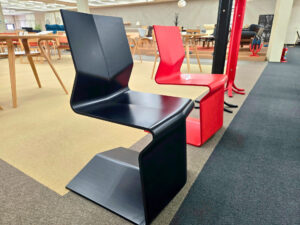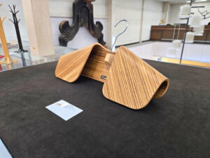 今回、もっとも衝撃をうけたのが折り紙から着想を得たという、こちらの「ORIZURU」シリーズのチェア。