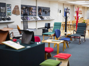 ショールームには、天童木工を代表する名作たちがずらり!