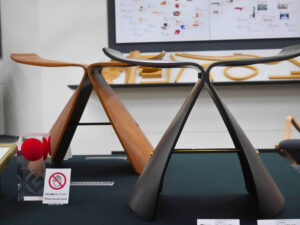 ショールームには、家庭向けの家具のほかにオフィスや官公庁向けの家具、さらには車のハンドルなど幅広い製品が展示されているほか、天童木工の歴史が学べるコーナーもありました。