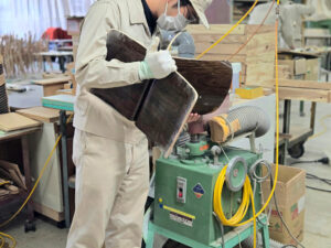 椅子の種類によっては、電動やすりのあとに小さなかんなやサンドペーパーでさらに細部まで磨き上げるものも。